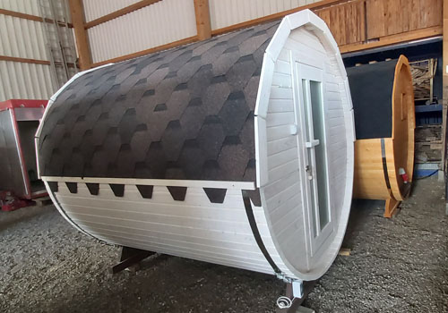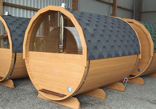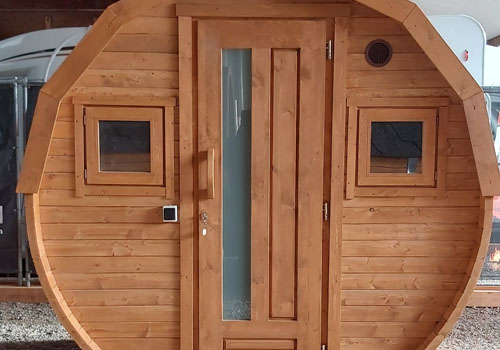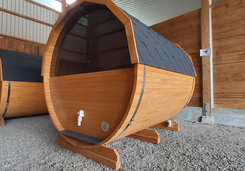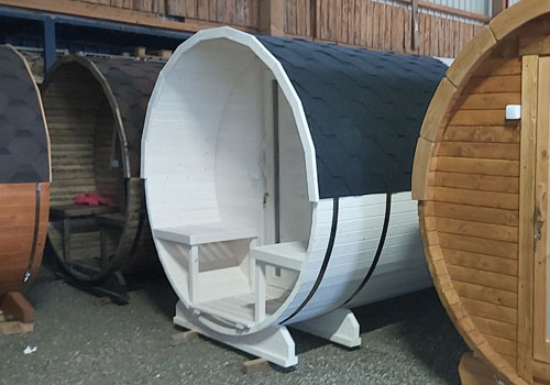 Unsere Saunafässer werden von uns in Litauen hergestellt. So können wir kurzfristig Standardmodelle, aber auch Saunen nach Kundenwunsch produzieren.