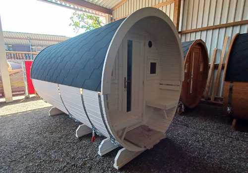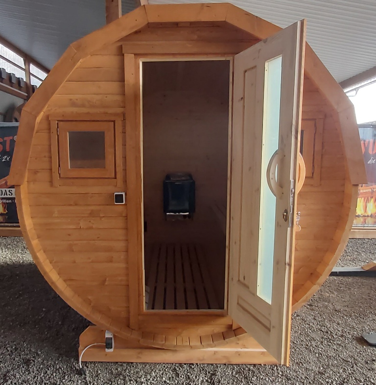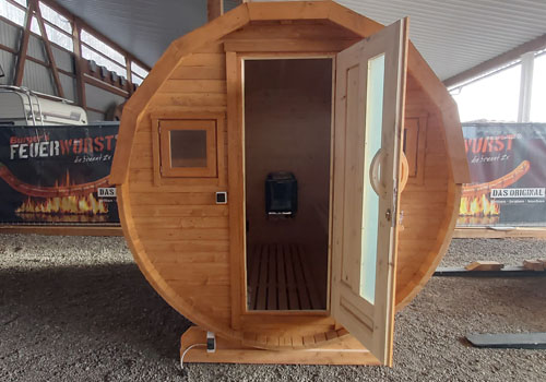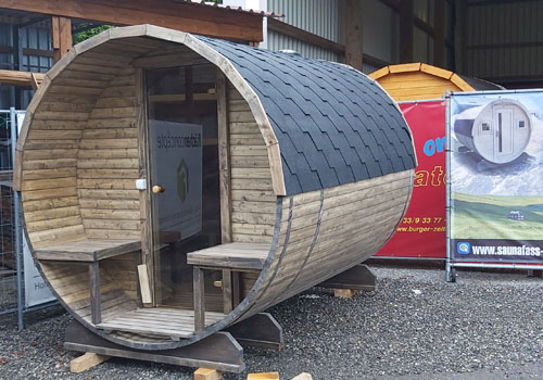 Da wir unsere Saunafässer selber in unserem Werk in Litauen produzieren, haben wir ständig Fässer zur Besichtigung und zum direkt mitnehmen immer auf Lager.