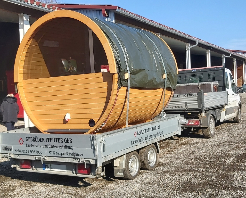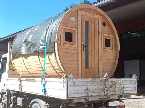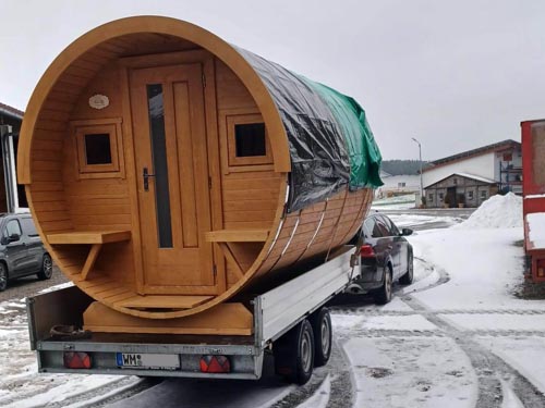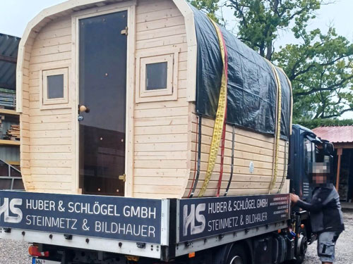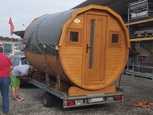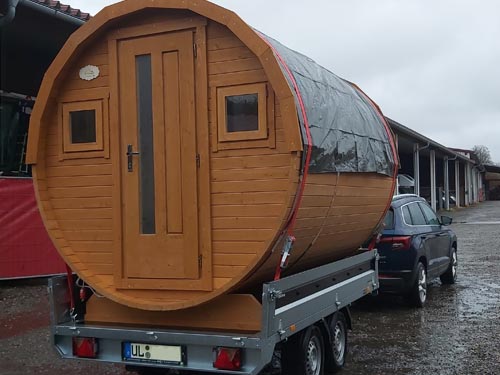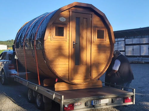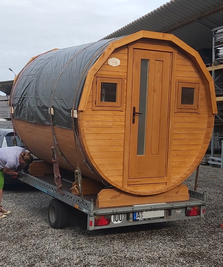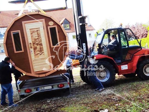 Nachdem Sie sich Ihre Sauna bei uns vor Ort angesehen haben und sich entschlossen haben, diese käuflich zu erwerben, können Sie Ihr Saunafass sehr gerne auch bei uns selber nach terminlicher Rücksprache abholen.